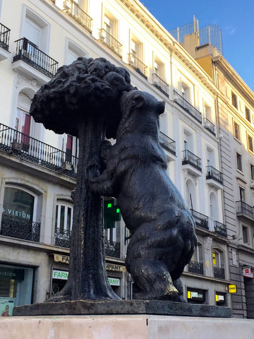再往前走就见到了著名的“熊抱树”雕像。传说有个小男孩被一只小黑熊追,情急之下爬上了草莓树,他妈咪闻讯赶来。他想了一下,还是对赶来救他的妈咪说,“妈妈,快跑!”(西班牙语念马德里),这就是马德里的得名。后来我问我老娘,如果我在树上你咋办,我妈想了下说,我会冲上去,然后就在车上打盹了。而我竟一时哽咽,差点泪目。