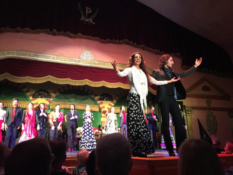 晚上旅行社给我们预定了9点场的弗朗明哥表演。据说7点档的是亚洲场,专门接待旅行团,演员和表演水平都很一般。而9点场的都是接待欧美团,好多演员还得过弗朗明哥比赛的奖项。看表演很有趣,门票包含一杯饮料,可以选择可乐、果汁、或是葡萄酒。表演到一半的时候,会有人来拍照,照片会先给你,如果确认要,再付钱,12欧,还送一把小扇子。