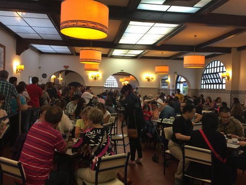 这是一家百年蛋挞店——贝伦蛋挞,很巧,就在修道院的隔壁街。贝伦蛋挞的味道很神奇,口感是绵密的,不像是澳门或者上海那种嫩滑的布丁状,蛋挞上面还要撒肉桂粉和糖粉,每个只要1块多欧元。门口始终大排长龙,但是店员动作超快,一个负责收钱,另一个负责发货,看来10多米开外的队伍,10分钟就可以拿到咯。而店内更是深藏不露,大到我一度迷路走不出来。
