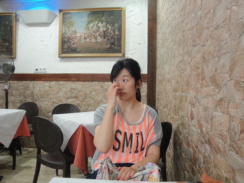 出了大清真寺,门口随意找了家小店吃TAPAS,傻不拉几地点了2个都有土豆的色拉,管饱。后来晃晃悠悠走到集合点,才发现外套落在小饭店里。一路狂奔回去。我做手势说椅子上的外套你们有看到吗?两个老伯伯围着我做手势说不用担心,另一个老伯伯把叠好的衣服从柜台里拿出来,嘿嘿,顿时对西班牙人很有好感哦。吼吼,肢体语言真是人类共同的语言。