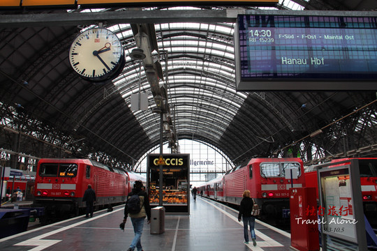 列车到达法兰克福,法兰克福是德国,不是法国,不要笑,确实还是有许多人这么认为。法兰克福(Frankfurt),正式全名为:美因河畔法兰克福(德语:Frankfurt am Main),以便与位于德国东部的奥得河畔法兰克福(德语:Frankfurt an der Oder)相区别。是德国第五大城市,德国乃至欧洲重要工商业、金融和交通中心,位于德国西部的境内,处在莱茵河中部支流美因河的下游。