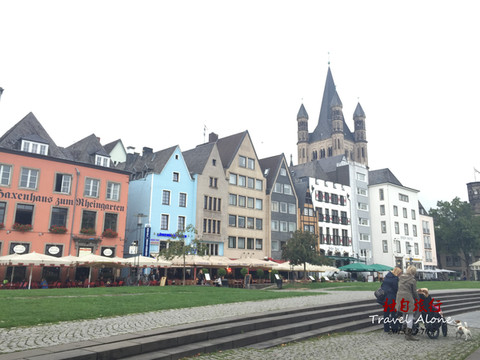 科隆大教堂的东南方向5分钟步行距离,是从古罗马时期至今都非常热闹的中心区。过去这里是集市的旧址,保留了很多文艺复兴时期的建筑。今天,酒吧、餐馆、商业街在这里依然井井有条,一如旧时的繁华。