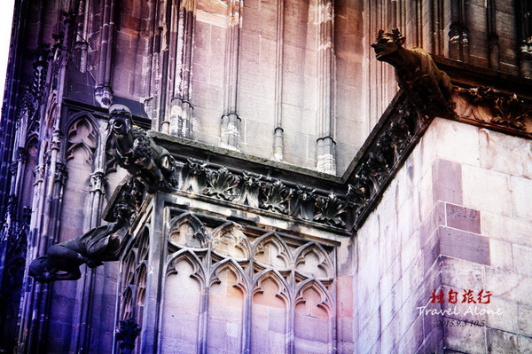教堂中央的双尖顶直剌云霄,一连串的尖拱窗驮着陡峭的屋顶,整座教堂显得清奇冷峻,充满力量。
