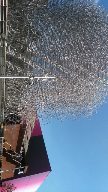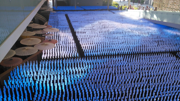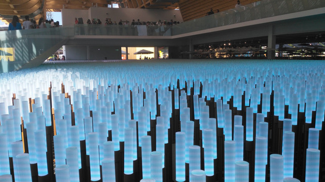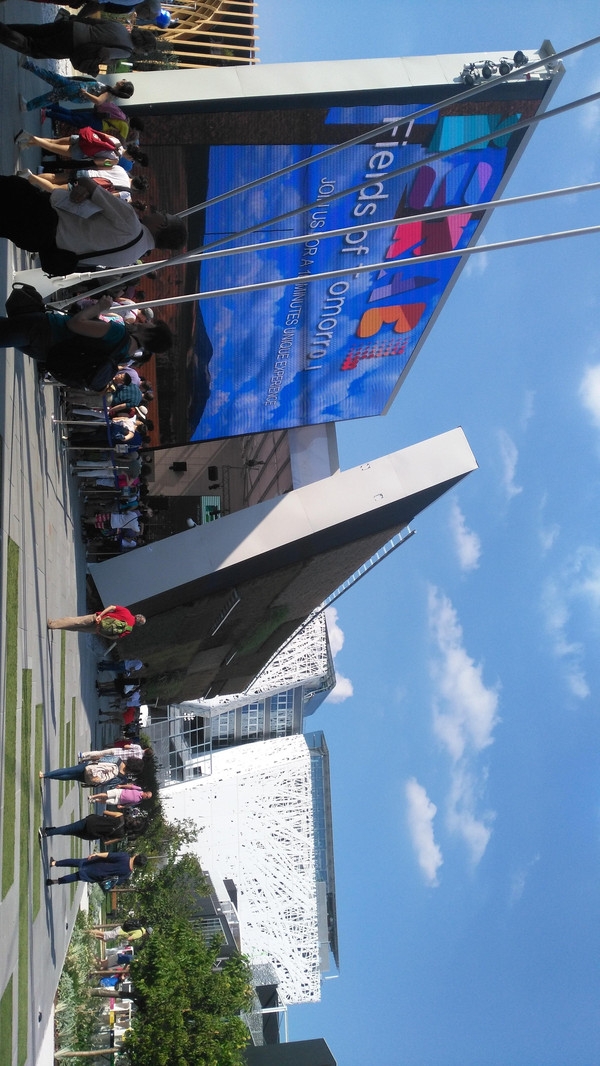 中国馆的主题是“希望的田野”,这田野怎么表现呢?上万只LED管就搞定了,既表现主题有突出环保理念,中国人真聪明。这变幻出不同色彩的田野使人感觉中国大地充满了希望。
