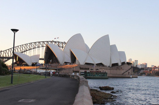 到达皇家植物园已经夕阳西下了,从皇家植物园看悉尼歌剧院,余晖映在屋顶上,很美。