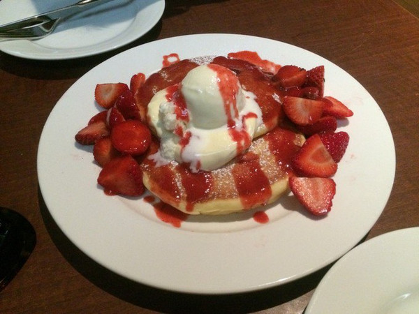 pancake是软软的煎饼配上冰淇淋,第一口很惊艳,但是吃多了还是会有些腻。