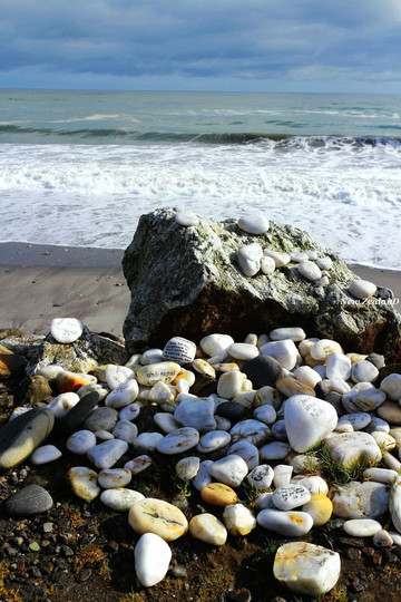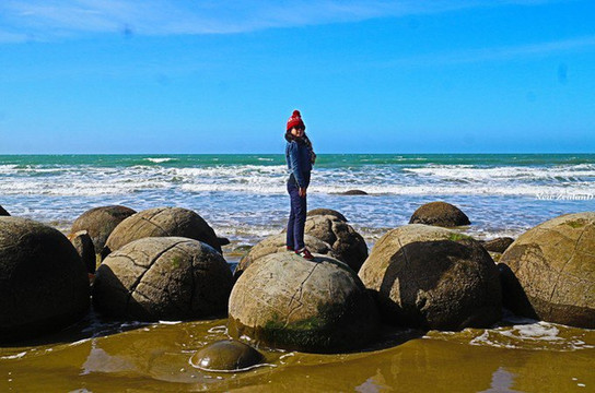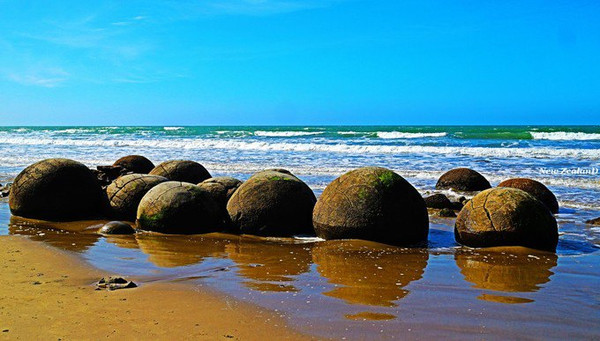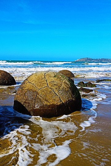 Moeraki,摩拉基!当海水退潮时,就会看见有50多个巨大的圆石头露出海面,说他们是石头,不如说它们是巨型石蛋。形状之圆,内结构之神奇,无不惊叹大自然的鬼斧神工。