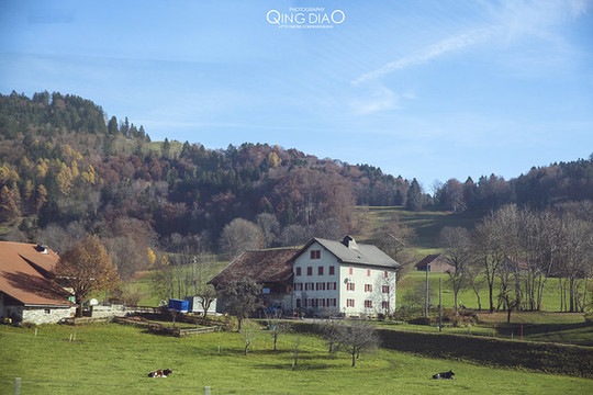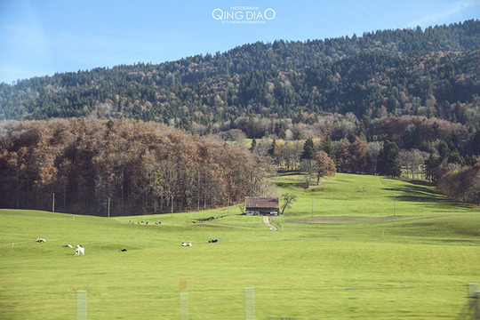 中午出发去洛桑,离伯尔尼约100公里,开车的话要1小时左右。路上全是美景啊,空旷的草地上有很多奶牛,新近大自然。