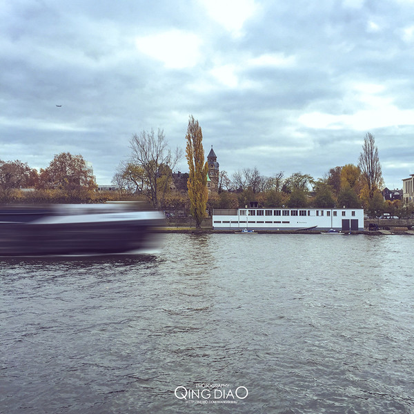 早上的美因河边非常的安静,几乎看不到人,河上偶尔会有几艘船只路过。