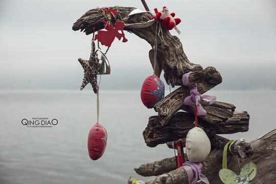 湖边立了个木头的雕塑,上面挂着的不知什么,也不知有什么寓意。今天的行程也很满,欣赏到了完全的湖光山色。