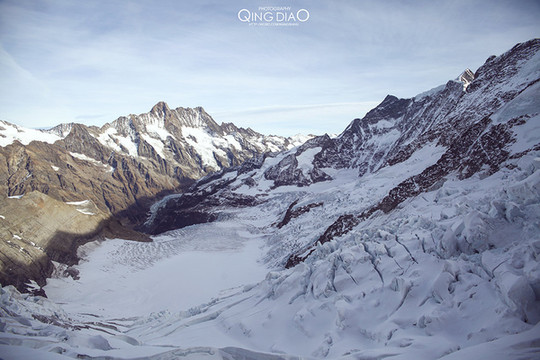 少女峰上的景点也挺多,一定要按上面的顺序走完,不然要走冤枉路。上面的景点无非就是看雪山,还有一些冰雕可以欣赏,上面的亮点还是最后一站,有个很大的山峰可以出来看雪玩雪。