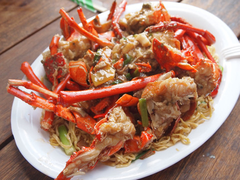 因为店家是中国人,推荐我们当中部分不必用过浓重的酱料,采用葱爆炒的方式烹制,下面再配蛋黄面,色、香、味俱全!