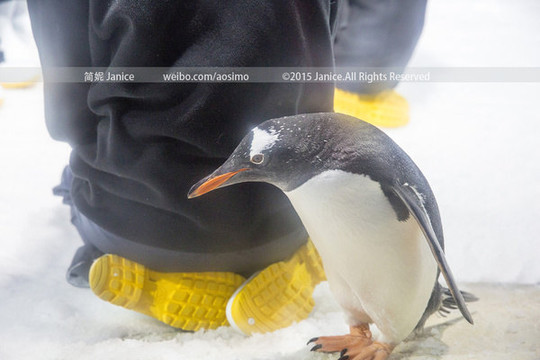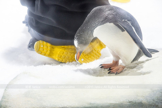 在这里还有奇妙的与南极接触的机会,有游客在工作人员的带领下换上了特定的服装进入了企鹅馆,跟企鹅宝贝们有个亲密接触,工作人员在给游客讲解的时候,看见一只企鹅对他们的鞋底产生了浓厚的兴趣,先是看看、闻闻,然后就用嘴去啄了几次,还是不得要领,最后这只探索宝宝没能抵挡住工作人员喂食的小鱼的诱惑,在看到小鱼以后兴奋的离开了。