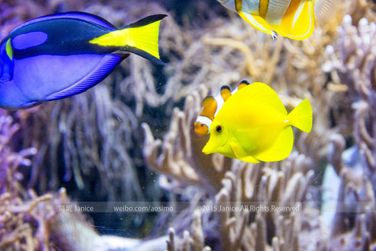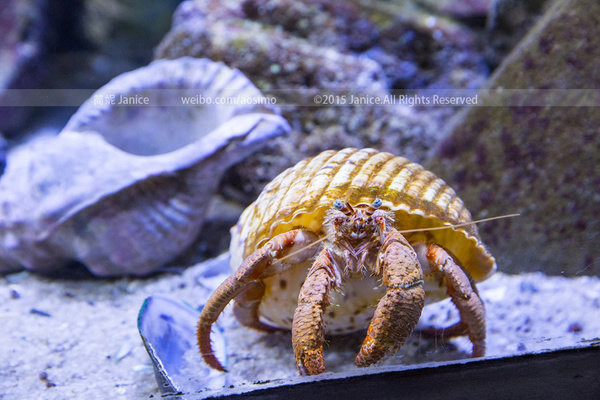 在鱼类展馆,这里都是比较小的鱼类,五颜六色,非常漂亮,看过海底总动员的孩子们,对尼莫印象最深了吧,在这里你和孩子们也可以看到。色彩鲜艳的热带鱼类品种繁多,红腹水虎鱼、章鱼、海鳗、龙虾以及寄居蟹等等都可以一一看到。