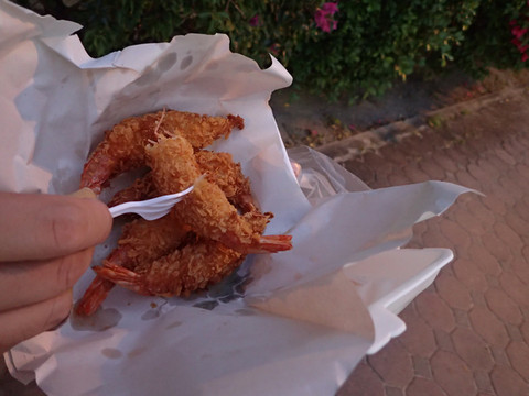 于是先买了点炸虾零食吃,100THB, 吃的挺饱的。