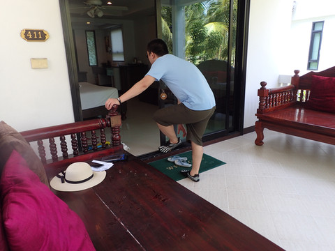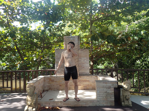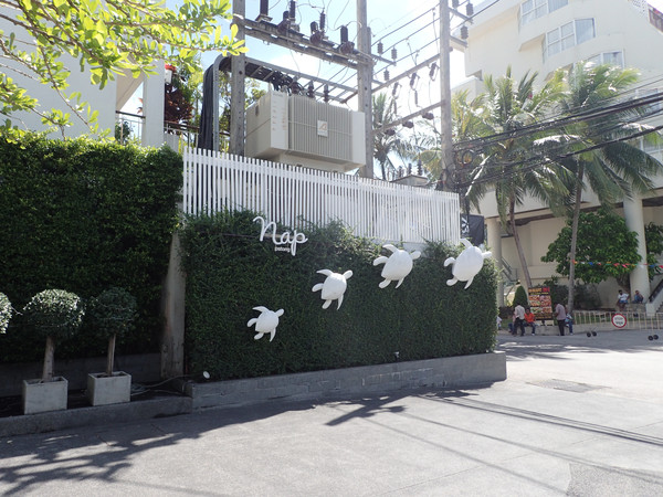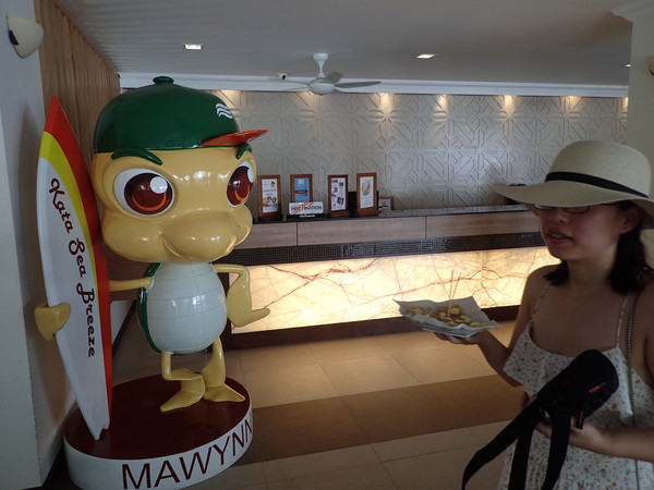 酒店门口的小乌龟,普吉很多酒店都有象征性标志的动物,示意环保。(请忽略旁边拿BANANA PANCKE的我,LG拍照技术太差。。。拍个乌龟都能把路人拍进去)
