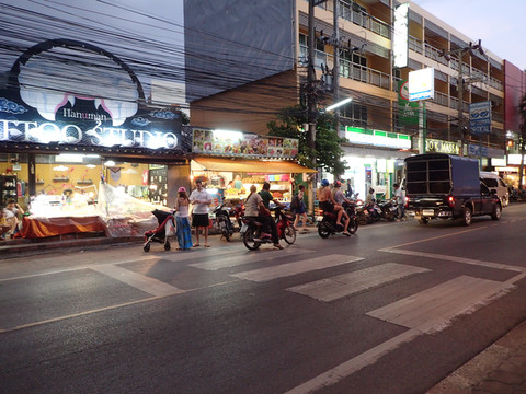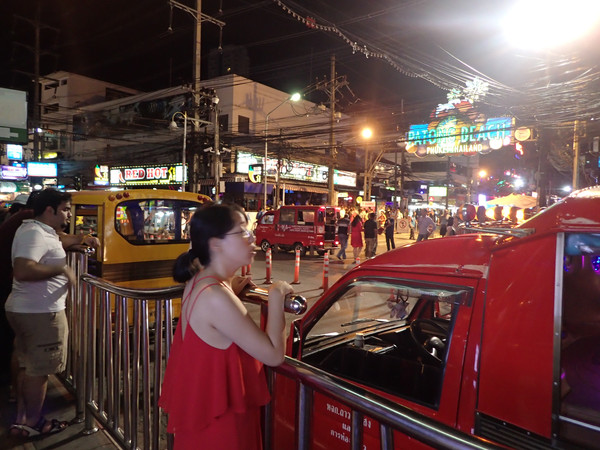 下面这条是主夜市街,里面全是酒吧,还有人妖在路上招揽客人一起拍照的,人妖本来就高,穿的那鞋子有20公分吧。。。。气场超级强。