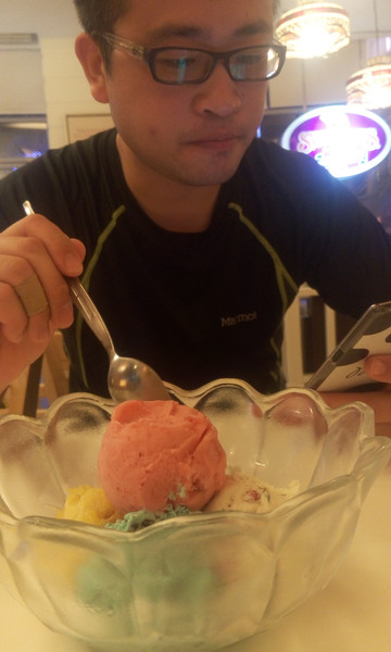 想想还是明天来买东西好,免得带的重,于是去吃了外面那家有名的冰激凌店,swensen‘s