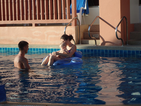 外国人带小孩真是和国内完全不一样了,泳池里好多小孩看着才四五个月大,就和大人一起下水了,三、四岁的数不胜数,而且很多都不用泳圈。