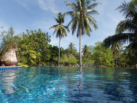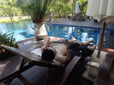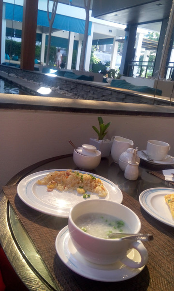 但是我们做了个错误的决定,去外面池边欣赏美景吃早饭。。。。太阳直晒超级热啊,里面空调舒服啊。。。。
