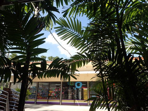 出酒店后,看见空置的排挡房,还有便利店。