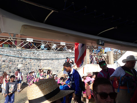 出发了,码头人超级多的,穿紫色的衣服的就是导游。