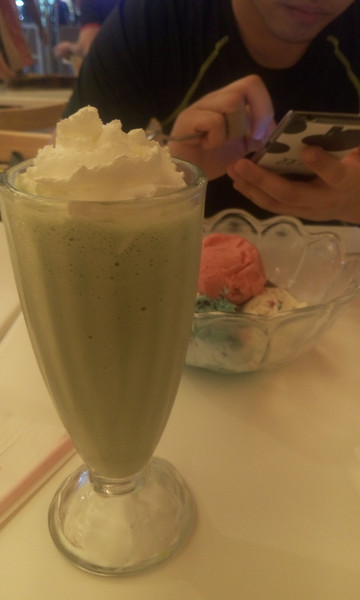 绿色的抹茶我喝的,味道很好,清清淡淡的,那5个top 5的球味道实在浓郁,我不喜欢,LG全吃了。。。。爱吃冰激凌的男银啊,。。。。。这一顿500THB左右,价格在泰国不算便宜啦。
