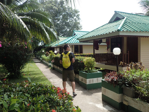 吃完休息好,走人啦。路过拉查酒店拍了张,只限旅客进,大家在这都很礼貌,看着门口这么写就都没有进去。