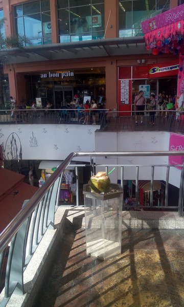 下面这张照片我我们在接到携程无力为我们更改机票的通知之前,最后一个点,饿的不行,路上随便吃了点,LG要了鸡肉串80THB, 我要了个椰子,60THB.
