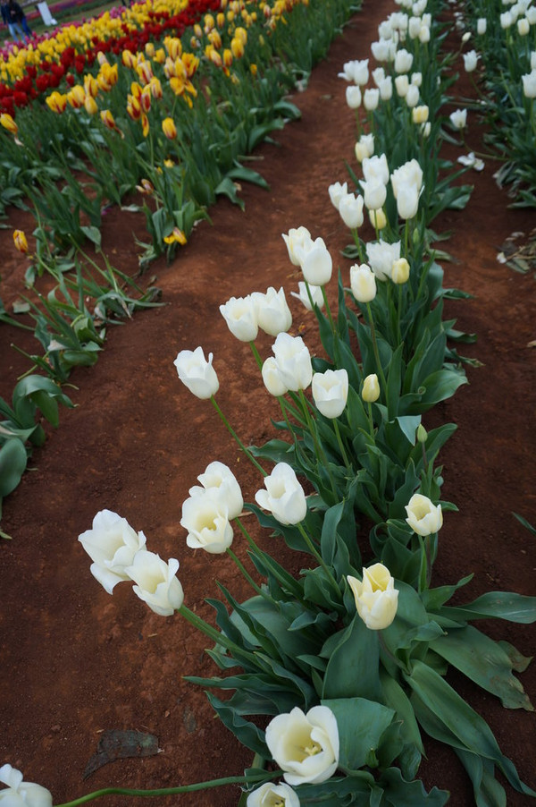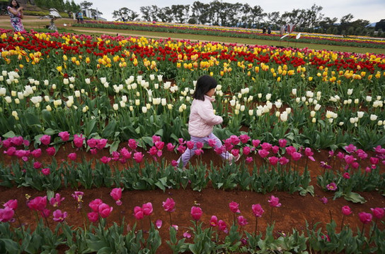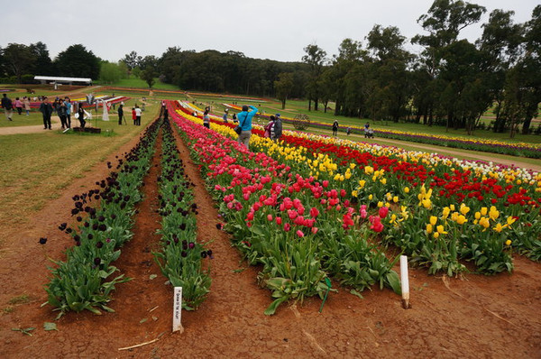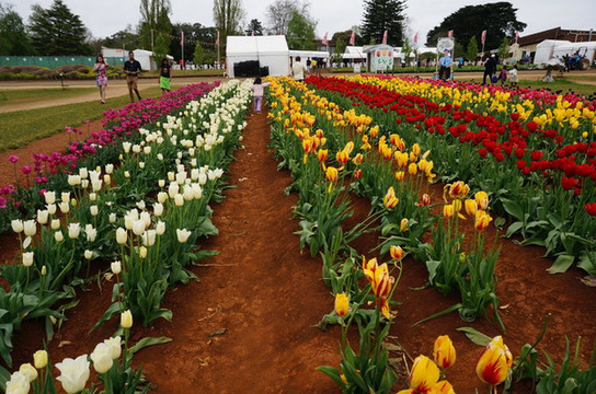 然后直奔Churchill农场,比较遗憾的是剪羊毛、挤奶表演都在下午,早知道昨天直奔这里了。Churchill自己是一个小岛,介绍也是一个澳大利亚梦的故事,来自英国的农户,猛烈干活,建成了一个绿草如茵的富裕农场;现在是作为历史遗迹保护起来了。除了养了几只羊,牛,马,还有两只孔雀和火鸡。出来之后差不多一点了,我们直奔丹德农山;丹德农山是一片很大的区域,我们也只能在几个点玩一下,首先是郁金香节。我们刚好赶上了末尾,倒数第二天。由于我们到的也比较晚,很多节目结束了,给我们半价。