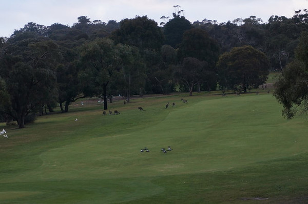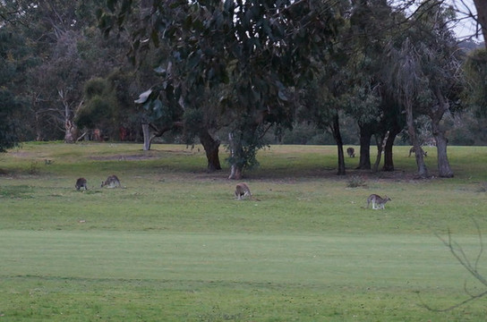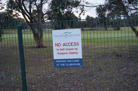 然后去著名的高尔夫球场看袋鼠。人家不让进去了,立了一块牌子,到那时没有人看守,我们还是进去看了看,当然不好意思走到正中间,远远的看。