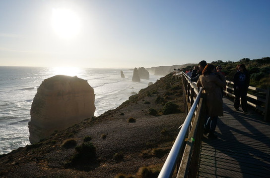 黄昏的时候,我们到达了吉布森台阶和十二门徒,只好看一下逆光下的十二门徒了。感觉岩石本身就属于比较松软的那种,可能随时都会有新的崩塌吧。