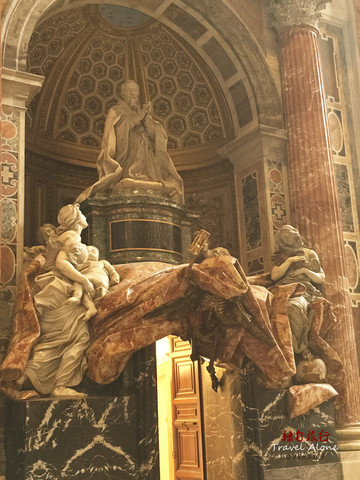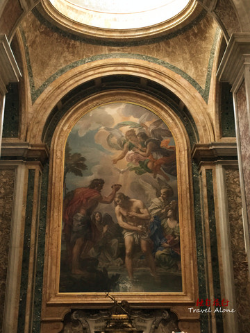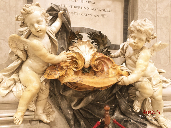 大殿内有很多巨大的雕像和浮雕,大殿的左右两边是一个接一个的小的殿堂,每个小殿内都装饰着壁画、浮雕和雕像,最著名的是米开朗基罗的圣母哀痛雕像和一座圣彼得的青铜塑像。我最喜欢的是刚走进大门处的两个小天使捧圣水缸的雕塑,从形象上看小天使只有一岁的样子,然而雕像的实际高度有2.5米。众多的统治者、勇士、殉难者的雕像给人们留下了太多的威严、冷峻和痛苦的记忆后,再看到这天真可爱的小天使时,一种安慰、一种美好的感觉油然而生。艺术家把小天使和圣水放在一起,是因为那时的人们视水为上帝赐予人的圣洁之物,水是生命之源。