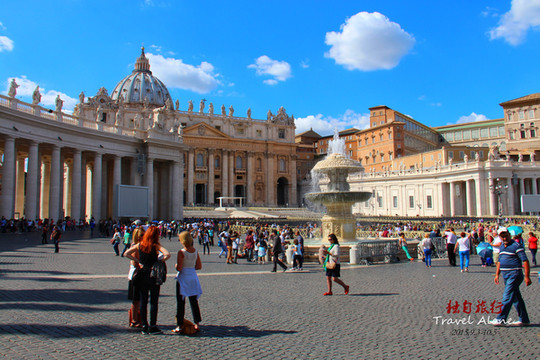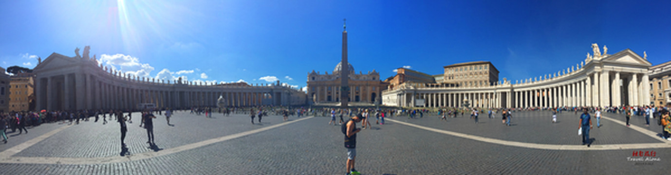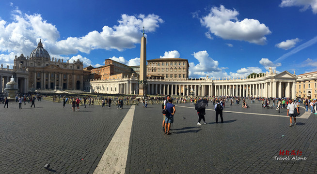 圣彼得广场(Piazza San Pietro)这个集中各个时代的精华的广场,可容纳50万人,位于梵蒂冈的最东面,因广场正面的而出名,是教廷举行大型宗教活动的地方。