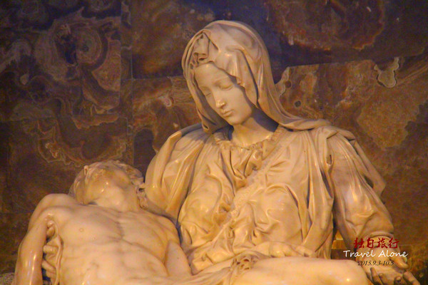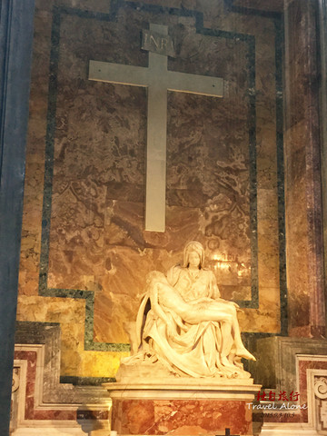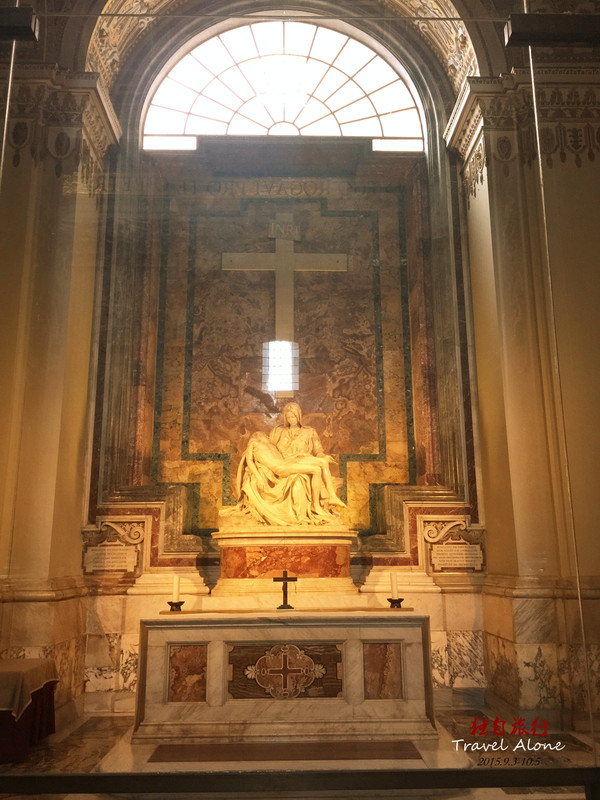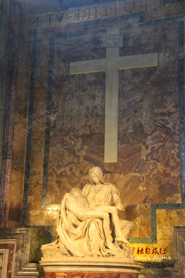 进门口的右边走廊里,有米开朗基罗23岁时的作品《伯多禄》。只能隔着玻璃欣赏,但是仍然能打动任何人的心。