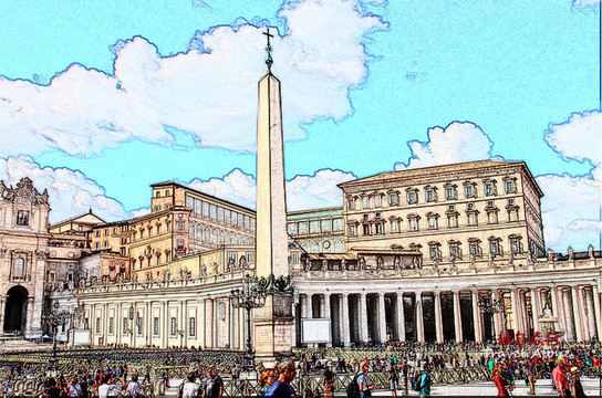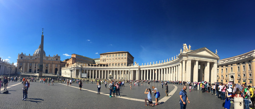 罗马教廷的广场位于圣彼得大教堂前。它是罗马最大的广场,巴洛克式风格,可容纳50万人,是罗马教廷用来从事大型宗教活动的地方。坐落在台泊河西岸。广场前面有一条灰石铺成的国界线。以广场正面的圣彼得教堂得名。由于梵蒂冈国界除圣彼得广场外均以城墙为界,因此意大利不承认圣彼得广场属于梵蒂冈。