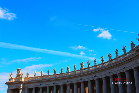 朝广场一侧的每根石柱的柱顶,各有一尊大理石雕像,他们都是罗马天主教会历史上的圣男圣女,神态各异,栩栩如生。