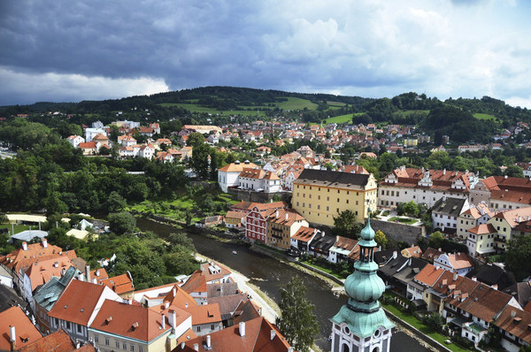 克鲁姆洛夫被宽阔蜿蜒的大S形的伏尔塔瓦河环抱着,山恋、森林、河谷、塔楼、红瓦……,深深吸一口气,接着就不断按快门。除了按快门,我不知道自己还可以有什么作派。