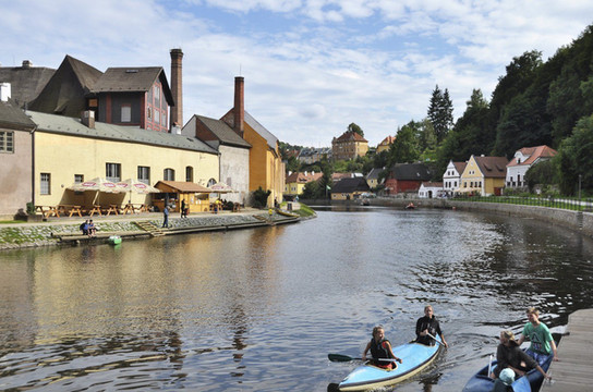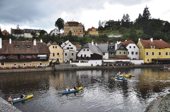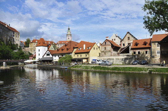 克鲁姆洛夫(Cesky Krumlov)的拼写复杂发音古怪,驴友们简称为CK ,是世界上最美丽的几座城市之一,联合国教科文组织遴选的“人类遗迹城”。梦幻,仿佛成了捷克克鲁姆洛夫的某种命定,卓尔不群又恬静安详,还可以散发出各种暇想。走下楼来,青石街、小桥、流水、酒吧……,城市依据蜿蜒的河流在两岸伸展,布局紧密而富有层次。刚才俯瞰到的梦幻般的城堡、花园、中世纪塔楼以及层层叠叠橘红色的屋顶,此时掩映在波光绿影里,一路相伴,令人窒息,令人受宠若惊。