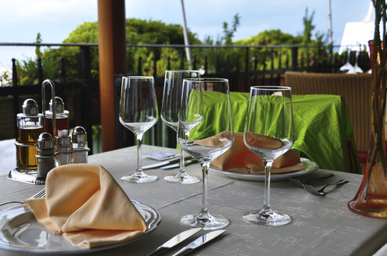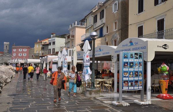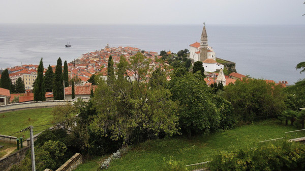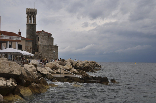 海边小镇皮兰,紧挨着阿尔卑斯山和亚得里亚海,占尽湖泊山川各种地理优越。从地图上看,是斯洛文尼亚靠西南边伸出来的一个角,和威尼斯隔海相望。我们去时,阴雨绵绵,时而雨霁,马上有清爽的蓝色拨开乌云。外国人很多,散步,游泳,坐在路边凉棚里喝咖啡,不像我们,急匆匆恨不得用半天时间数尽皮兰的每一块砖石。那是不可能的,我早早觉悟到这点,狠下决心停下脚步进了午餐的餐厅,找靠窗的地方坐下,叫一杯水,悠然看窗外雨点淅沥,看朦胧地中海里的一叶帆船。午餐是特色海鲜餐。服务员们正在眉清目秀、体态轻盈修长的老板娘的带领作着准备。每个顾客有喝水喝酒几个不同的玻璃,每个玻璃杯都被擦得晶莹锃亮,施瓦洛斯奇水晶一般。不锈钢的餐具也是如此,在服务员一丝不苟的反复擦拭下闪着光。吃什么不重要。生活就该这样,注重细节,注重品位。