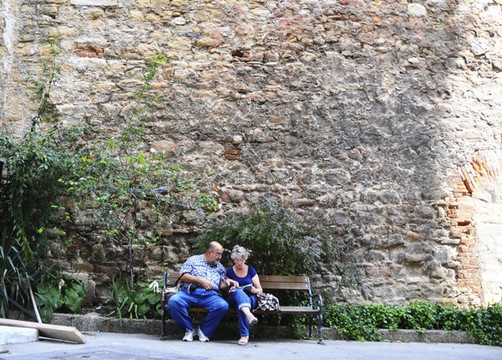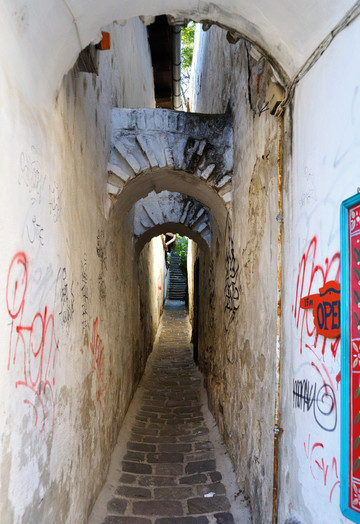 审美既已疲劳,便有其他体验取而在之。在路上,总有千般万般的收获。旅游的魅力在于此,而非景点。城堡在山上,同事不上山,帮我看着“辎重”,让我轻身上阵。城堡晃一圈,早早下山,一方面对景点不感兴趣,另方面不忍让好心的同事为我服务太久。同事身边还有个小男孩,等着参观完城堡的父母下山经过此地时来接他。我让同事先走,我陪孩子等他的父母。上山时,导游说过这儿是下山的必经之地,所以大家把它当作休息站。谁知一等再等,始终没等来他父母。小男孩十岁出头,胖乎乎的很可爱,不停地说着笑话,说着他认为有意义的故事,一点也不焦急。可是我淡定不下来,城堡就这么一个弹丸之地,不知那儿发生了什么让众人滞留。后来才知道,好心的导游一时兴起,带大家往另一条游客不去的小道下山,直接下到山的那一边。孩子父亲绕了好半天,过来接走孩子,而我,则失去在原生态的卢布尔雅行走和观赏的机会。扼腕叹惜。