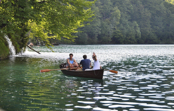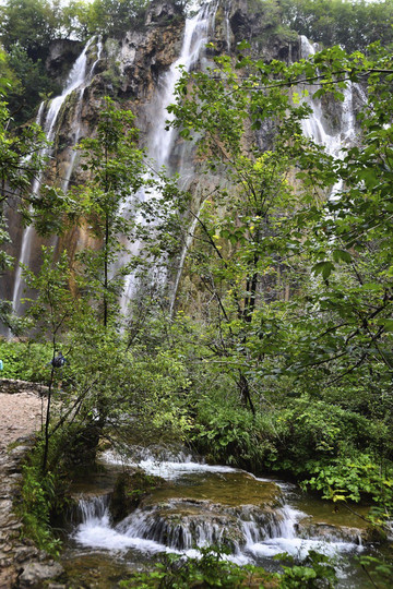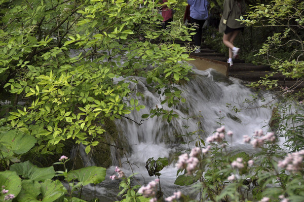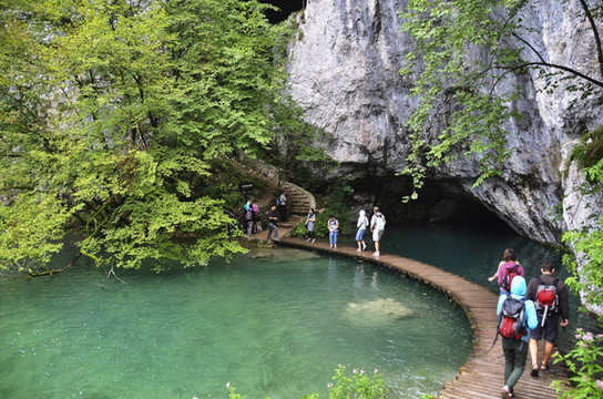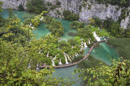 在应该集合的时间,没等来大巴,说是大巴去修了,不知是真坏了,还是司机有情绪。谁都没怨气,所谓旅游,不就是在陌生的地方浪费时间么?虽然不能走远,但好坏也能在巴尔干半岛上随便走走。随后去十六湖区,全称克罗地亚十六湖区国家公园。公园位于克罗地亚中部的喀斯特山区,创立于1949年,为东南欧历史最悠久的国家公园,现在也是克罗地亚最大的国家公园。从网上看,很像九寨沟,置身其中,更像九寨沟。但有个很大的优势:人少。恍惚可产生走进丛林自由探险的感觉。不时出现的指路牌,每每恰到好处地指点游客往正确的方向去。有胆小和路痴者,可沿着木制小道,蜿蜒至最后,便到了出口。公园的设施,满足了各类游客的需求。而我们则更多了一层保险,更胆小者,可跟随导游一路行走。