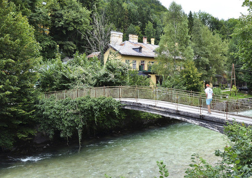 中午前到达巴登伊舍尔。那是导游推荐、旅友们推崇的重要景点。当年奥地利弗兰茨·约瑟夫(franz josef)皇帝就是在这里邂逅了美丽的茜茜公主,然后两人一见钟情的,然后两人举行了订婚的仪式。两人结婚时,索菲夫人赠送给儿子和儿媳一座皇宫。从此以后,皇帝弗兰茨·约瑟夫夫妇和这个小城结下了不解之缘,每年夏天来这里避暑,在附近小山打猎。从1854到1914,几十年的时间里,巴登伊舍尔被定为奥匈帝国的第二个首府,并登上欧洲上流社会疗养地的最高之位。这里也是电影《茜茜公主》的外景拍摄地之一。电影中,茜茜就是在伊舍尔的小溪边钓鱼,鱼钩甩到弗兰茨皇帝身上,一段姻缘由此产生。