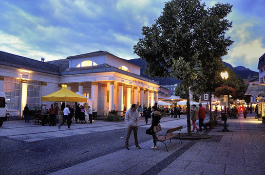 在巴登伊舍尔晚餐后,导游建议有兴趣有体力者可以跟他步行一小时回酒店。并不期待西方黑不拉叽的小城之夜有何精彩。走过一些地方,发现越是国外发达地方的夜越是安静,倒是中国的一些小县城,往往以不夜城伪装自己的繁华。出于友情支持,我参与了。越走,越发现导游真是个好人。小城是茜茜公主老公的出生地,而他的出生,是他父母得之不易的意外之喜。那几天当地人正在庆祝国王节,所有的商店都亮着灯,啤酒狂欢街头巷尾到处都是。小城的夜不仅妩媚热闹靓丽,还洋溢着浓浓的风情。
