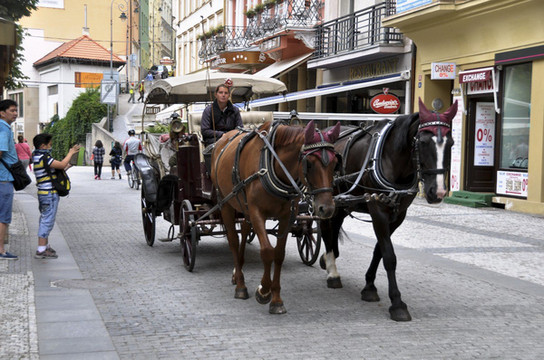 清晨,前往卡罗维瓦利,离布拉格约三个小时的车程。这些时间,正好可以斜倚在座位上,看尽窗外异国风情而不至疲惫。卡罗维瓦利是欧洲历史上最悠久的温泉小镇,既是疗养胜地,也是风景区。它没让人失望。城内巴洛克式建筑、温泉长廊及优美山谷景色,以及着民族服饰静候游客的马车夫,无不让人新奇、兴奋。泰普拉()河穿城而过,街道傍河而建,两岸多是独特的欧洲中古艺术建筑,洋溢着维多利亚时代风格。而行程上标识的弗日德罗柱廊,姆林斯卡柱 廊,索多瓦术廊等,只是这诸多建筑中的几个,走过看一眼,不书也罢。