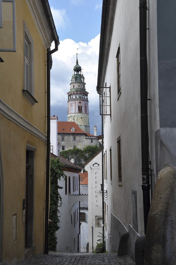 导游是好人,他没有图自己的轻松方便而把游客栓在身边。赞一个。每到一处总有相对充裕的自由。于是,我抵挡住“联合国人类文化遗产”的诱惑,一如既往地散漫,从城堡顶下来之后,便离群而去。自由活动的时间不算短,但远不够。我只能做选择。没在城堡滞留,没去公园和其他景点,走进深深的小巷中。那碎石砌铺就的小道,那斑驳的墙面,那屋角后面的悬念……,走在万里之外的CK,仿佛走进记忆深处,时空穿越,岁月的清凉深深地透近心底,又缓缓漾出。游客看到的克罗姆洛夫,精致美丽,童话一般;稍深处,则朴实安恬,过日子的好地方。