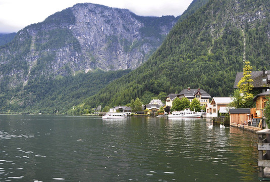 下午去了我推崇向往已久的地方——古镇哈尔斯达特(Hallstatt)。它不仅是奥地利可圈可点的著名景点,也被列为世界十大美丽小镇的之首。不仅美丽,还历史悠久,至今已有4500年,已被列入世界文化遗产。小镇极偏僻,所以有种说法是奥地利人故意隐蔽了它,来保护那桃花源般的安宁。不过我们乘着大巴舒舒服服直接到达,也体会不到它的偏僻,见到的是人群熙攘,再无宁静。