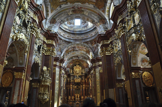 相比图书馆而逊色的教堂,其实是一个大放异彩的地方。走进那里,立即可以理解什么叫金壁辉煌。第一次,走进教堂会有一种被美得窒息、被美得震撼的感觉。