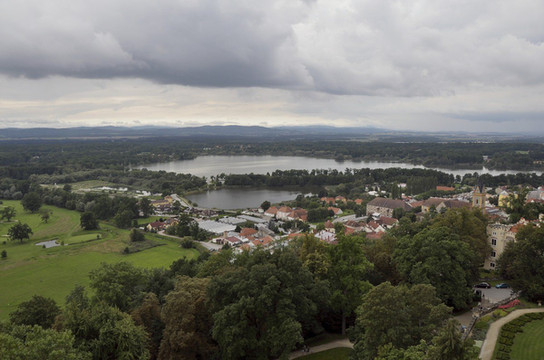 无论旅行社还是导游,都是把胡波卡城堡当作重要景点推介的。原因是现在这古堡,是一座最终依照英国的温莎城堡改建的新哥特式建筑。于我,仿得再像也是仿品,况且已经去过了温莎城堡,兴趣反而下降。登高望远,则见风景如画。红屋顶,绿草地,大片的湖点缀其中,虽天空阴霾,此景已然美不胜收。远离城市、不事雕琢的原生态的美。哪里看到过,这里是捷克腹地的一个独特地理符号。旅游宣传不如在这个符号作文章。胡思乱想。