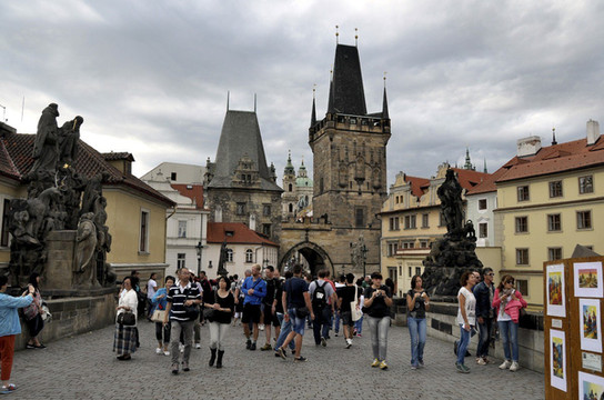 好心的导游昨天就答应带我们看金色布拉格。时间倒是掐准了,可惜阴云密布。晚餐后只能随他到街上其他景点走走,没记住哪是哪,需要时百度吧。只记住了,这个傍晚,我走在布拉格。